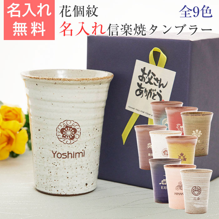 父の日プレゼント 花個紋 名入れタンブラー 信楽焼 雫