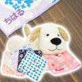 寝転んだ姿がとってもキュートなイヌのぬいぐるみに、18種類の中から選べるお洒落で可愛い今治うまれのハンカチが付いたギフトセット!出産祝いや結婚祝いに人気です。