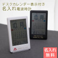 ご友人への結婚祝いのプレゼントや、お店の周年祝い、創立記念品などにカレンダー表示のある名入れ電波時計はいかがでしょうか。革のような見た目のお洒落な電波時計です。電波時計の下部に、プレゼントする方のお名前やお祝いのメッセージなどをプリントすることで、世界にひとつだけの記念品を贈ることができます。