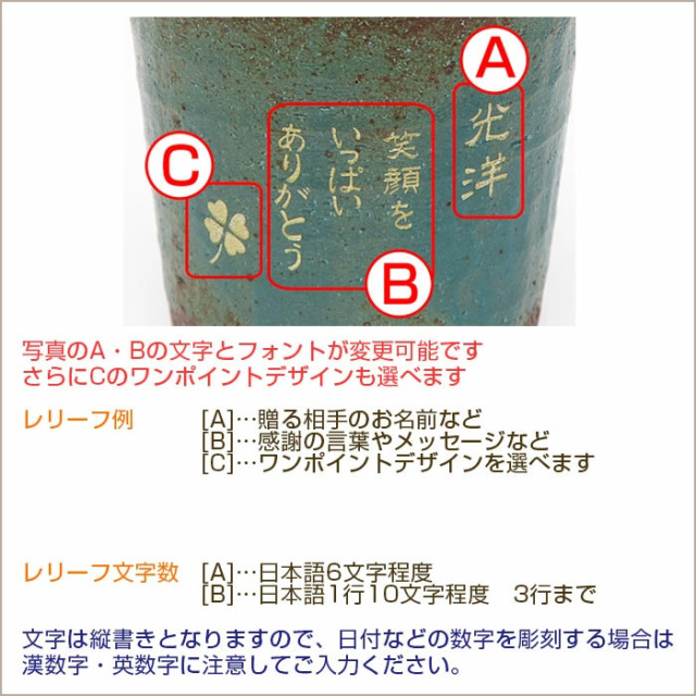 ステンレスタンブラー 還暦祝い 退職祝い サーモス 周年記念品 クリスマスプレゼント ご両親へのプレゼント ペアタンブラー シャチハタ 長寿祝い 卒団記念品 ブランケット 名入れ時計 おうち居酒屋 TOP表彰・受賞記念品 退団・卒団記念品 [消防団の退団記念品など]しがらき焼雫ロックカップ 焼酎カップ 木箱入り 価格: ¥6,700 (税込) [ポイント還元 67ポイント〜] 販売期間: 文字入れする書体: 選択してください B-1 (日本語) B-2 (日本語) B-3 (日本語) B-4 (日本語) B-5 (日本語) B-6 (日本語) B-7 (日本語) B-8 (日本語) B-9 (日本語) B-10 (日本語) B-11 (英語) B-12 (英語) B-13 (英語) B-14 (英語) B-15 (英語) B-16 (英語) B-17 (英語) B-18 (英語) B-19 (英語) B-20 (英語) Aの文字入れ内容: Bの文字入れ内容: Cのイラスト選択: 選択してください No.1 (ゴルフ) No.2 (野球) No.3 (サッカーボール) No.4 (バレーボール) No.5 (バスケットボール) No.6 (釣り) No.7 (犬) No.8 (足跡) No.9 (ねこ) No.10 (月とねこ) No.11 (鳥) No.12 (カメ) No.13 (さかな) No.14 (もみじ) No.15 (クローバー) No.16 (ひょうたん) No.17 (竹) No.18 (ウメ) No.19 (ハイビスカス) No.20 (さくら) No.21 (電車) No.22 (飛行機) No.23 (自転車) No.24 (バイク) No.25 (ヨット) No.26 (富士山) No.27 (鶴) No.28 (馬) No.29 (星) No.30 (ふるさと) No.31 (音符) No.32 (ピアノ) No.33 (ギター) No.34 (スマイル) No.35 (ダブルハート) イラストなし ラッピング選択: 選択してください ラッピングなし(¥0) 和風 掛け紙・無料(¥0) 和風 ラッピング(¥500) のし(¥500) 手提げ袋: 選択してください いらない(0円) いる(¥50) 数量: 個 カップの種類在庫購入夜空○ 桃○ 新緑○ ゆき○ つくし○ カップの種類在庫購入夜空○ 桃○ 新緑○ ゆき○ つくし○ 返品についての詳細はこちら 全5色から選べる信楽焼ロックカップは消防団などの退団記念品に選ばれています。お名前やメッセージを彫刻した名入れロックカップは真心こもった記念品に。手に馴染みやすく、手づくりのぬくもりが伝わる信楽焼の名入れ焼酎カップです。 このアイテムをオリジナルデザインで作る場合はこちらから [消防団の退団記念品など]しがらき焼雫ロックカップ 焼酎カップ 木箱入り 価格: ¥6,700 (税込) [ポイント還元 67ポイント〜] 販売期間: 文字入れする書体: 選択してください B-1 (日本語) B-2 (日本語) B-3 (日本語) B-4 (日本語) B-5 (日本語) B-6 (日本語) B-7 (日本語) B-8 (日本語) B-9 (日本語) B-10 (日本語) B-11 (英語) B-12 (英語) B-13 (英語) B-14 (英語) B-15 (英語) B-16 (英語) B-17 (英語) B-18 (英語) B-19 (英語) B-20 (英語) Aの文字入れ内容: Bの文字入れ内容: Cのイラスト選択: 選択してください No.1 (ゴルフ) No.2 (野球) No.3 (サッカーボール) No.4 (バレーボール) No.5 (バスケットボール) No.6 (釣り) No.7 (犬) No.8 (足跡) No.9 (ねこ) No.10 (月とねこ) No.11 (鳥) No.12 (カメ) No.13 (さかな) No.14 (もみじ) No.15 (クローバー) No.16 (ひょうたん) No.17 (竹) No.18 (ウメ) No.19 (ハイビスカス) No.20 (さくら) No.21 (電車) No.22 (飛行機) No.23 (自転車) No.24 (バイク) No.25 (ヨット) No.26 (富士山) No.27 (鶴) No.28 (馬) No.29 (星) No.30 (ふるさと) No.31 (音符) No.32 (ピアノ) No.33 (ギター) No.34 (スマイル) No.35 (ダブルハート) イラストなし ラッピング選択: 選択してください ラッピングなし(¥0) 和風 掛け紙・無料(¥0) 和風 ラッピング(¥500) のし(¥500) 手提げ袋: 選択してください いらない(0円) いる(¥50) 数量: 個 カップの種類在庫購入夜空○ 桃○ 新緑○ ゆき○ つくし○ カップの種類在庫購入夜空○ 桃○ 新緑○ ゆき○ つくし○ 返品についての詳細はこちら