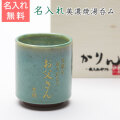 ご両親への贈り物や還暦祝い、誕生日プレゼントなどに名前入り湯呑が喜ばれています。ちょっと一休み、そんな時にあなたからの感謝の言葉が元気にさせてくれるはずです。贈り物に最適な木箱入りの世界にひとつしかない、特別な名入れプレゼントを贈りましょう。美しい若草色の名入れ湯呑です。